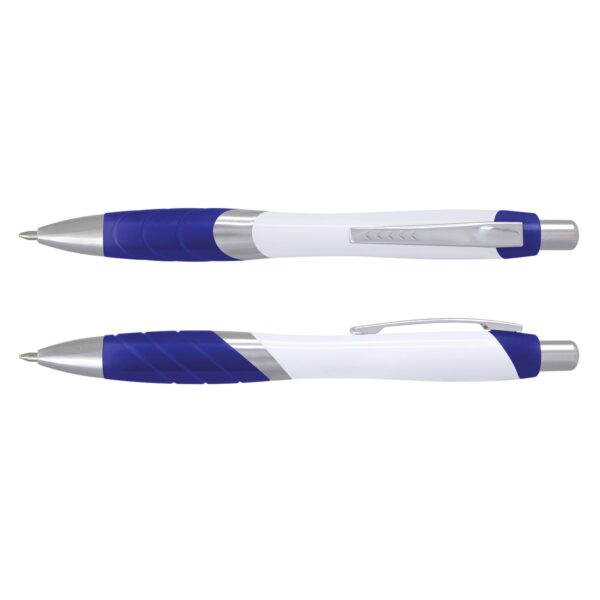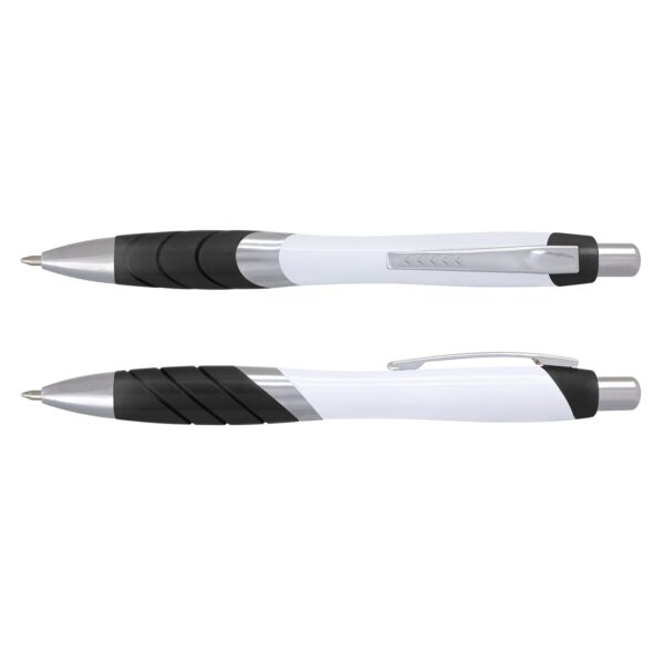 Description: Retractable plastic ballpoint pen with a white barrel, a translucent soft-touch grip and shiny chrome trim. It has a black large volume refill with 1800 metres of German manufactured Dokumental ink